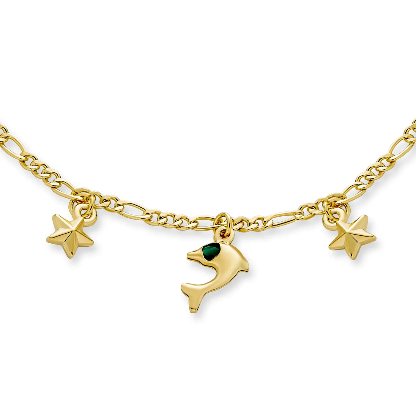 - Recall blissful summer days by the beach with this enchanting, charm link bracelet. Fish symbolic of harmony and balance, nautical motifs featuring ship anchors and multicolored glass fish dangle from a lustrous gold plated brass. Figaro marina chain to adds nautical oceanic flair to every look.