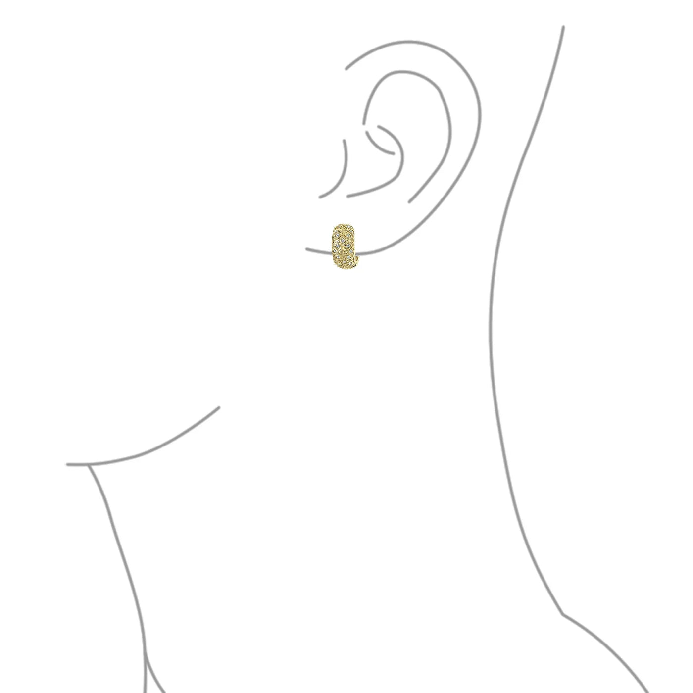 • Enhance your look with these gold-plated brass and CZ huggie hoop earrings, radiating instant sophistication. They feature a captivating cut-out floral design adorned with luminous CZ accents, exuding a vintage-inspired aesthetic.