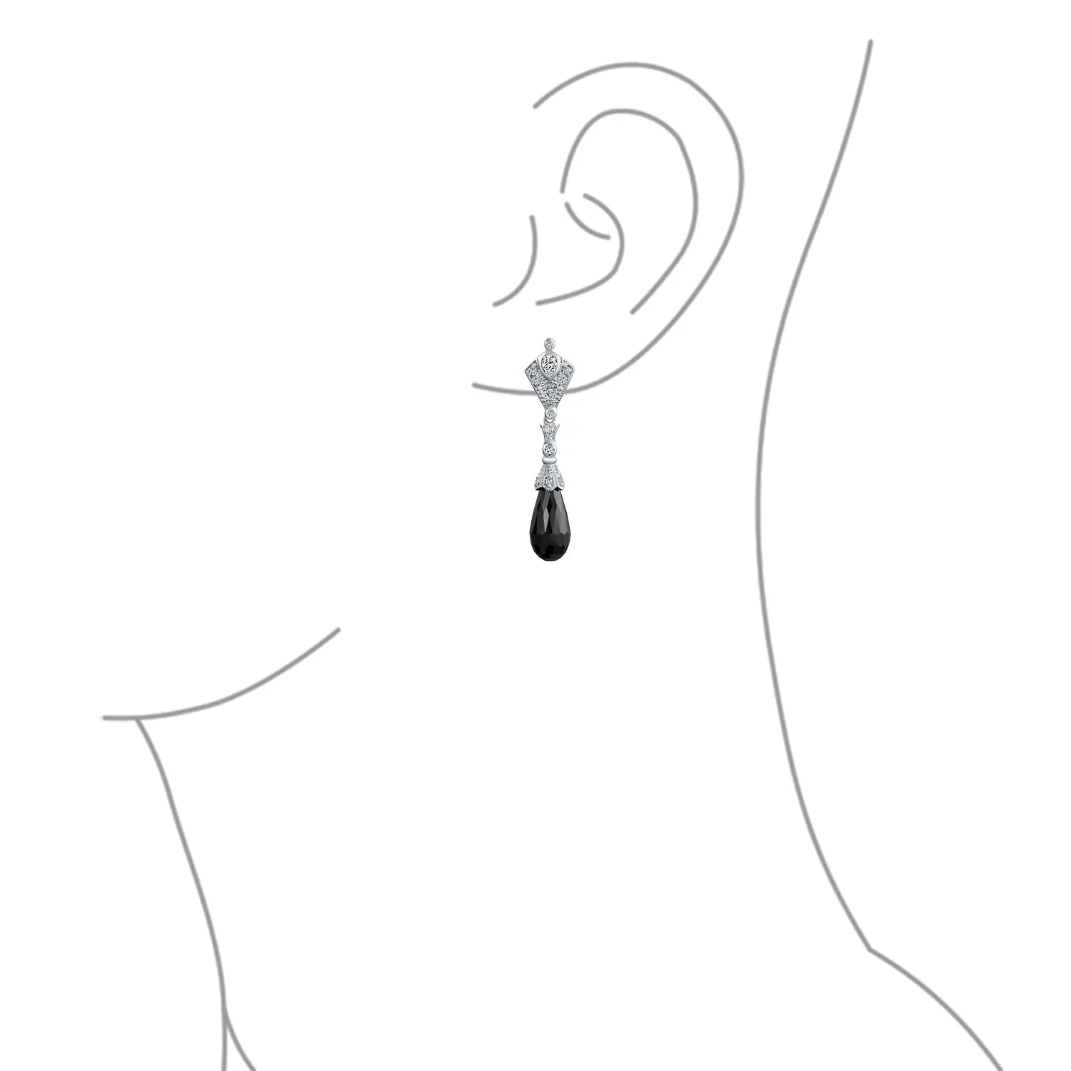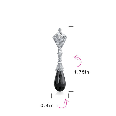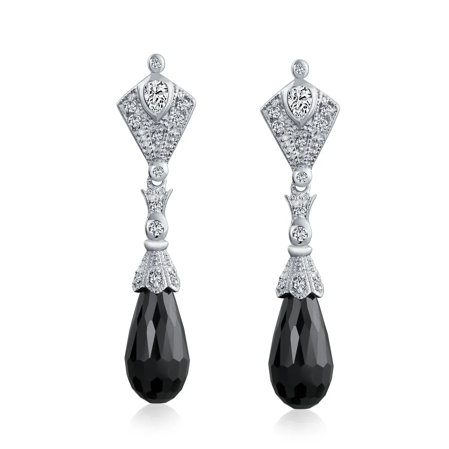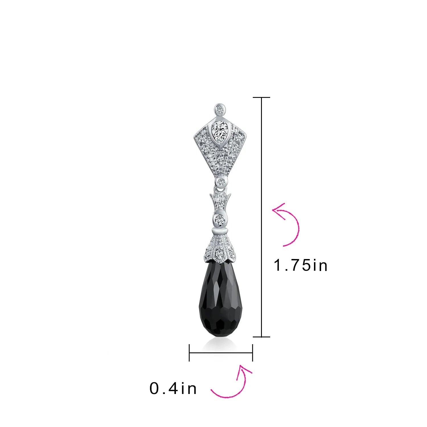 - ELEGANT DESIGN - Shine with vintage charm and a luxurious red carpet allure in these stunning sterling silver and CZ long drop earrings, featuring a regal black briolette glass bead suspended from an exquisite Art Deco-inspired CZ motif.