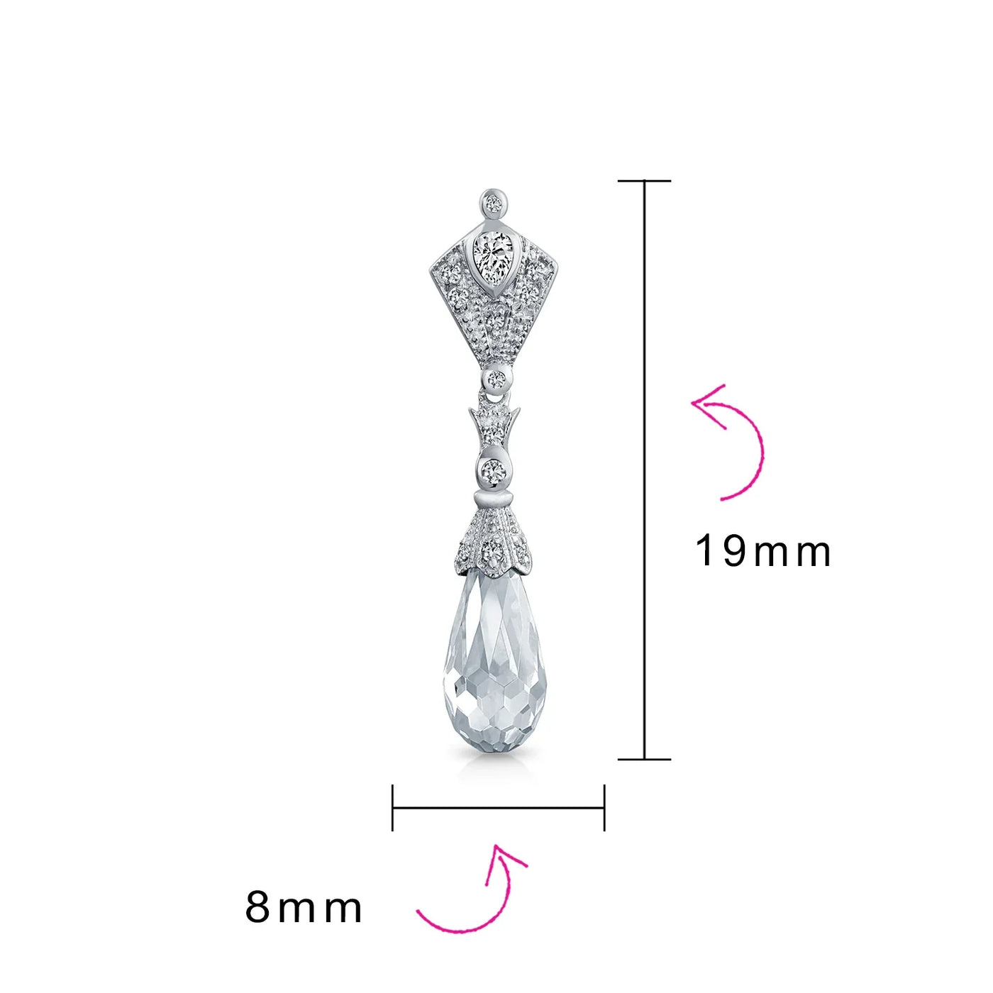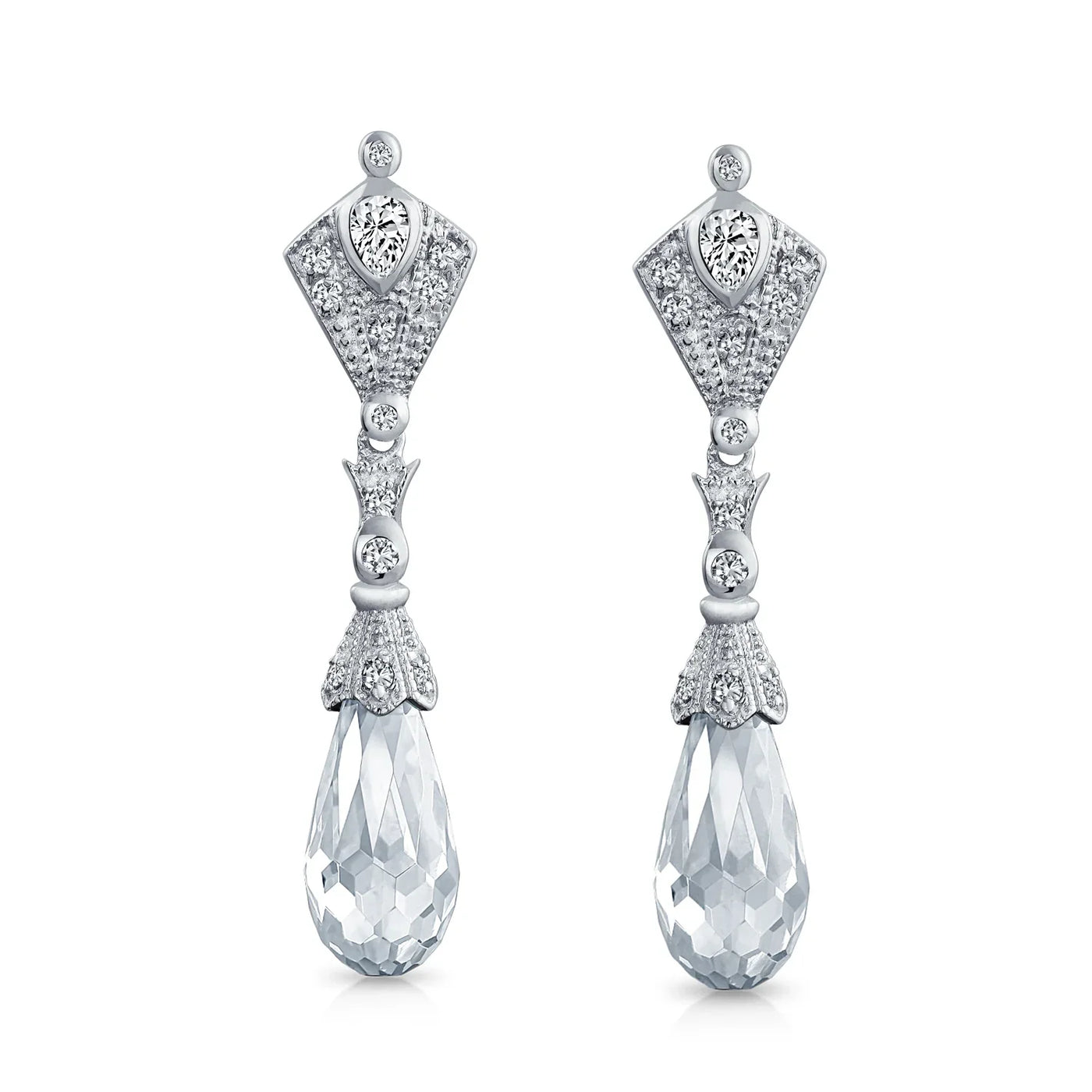 - Be the life of the party with these stunning chandelier CZ earrings. Perfect for evening events, they exude vintage glamour. Crafted from high-polished .925 sterling silver, they feature teardrop and round cubic zirconia stones. The large briolette crystal adds ultimate sparkle. Elevate your fabulous attire with these gorgeous, affordable earrings. Start your night on the town in style.