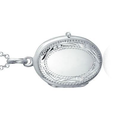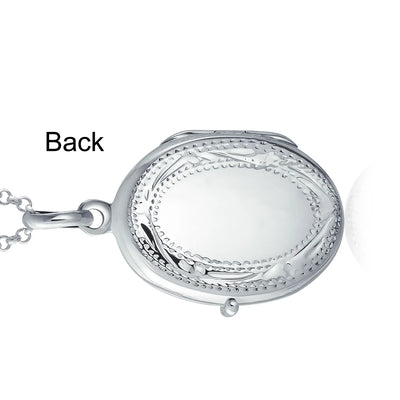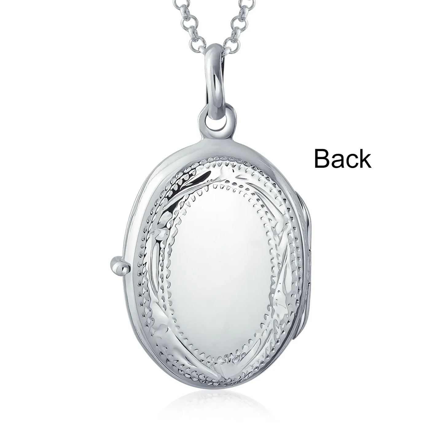 - This Antique Style silver locket is perfect for making your loved one smile this holiday season or year-round. It opens to hold two cherished photos. The oval locket features an engraved Vintage Style design. Made of .925 sterling, it's a lightweight, classic picture locket. A new locket necklace is a timeless gift of love she'll adore. Chain Included.