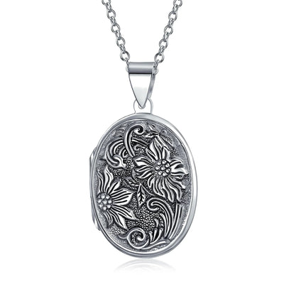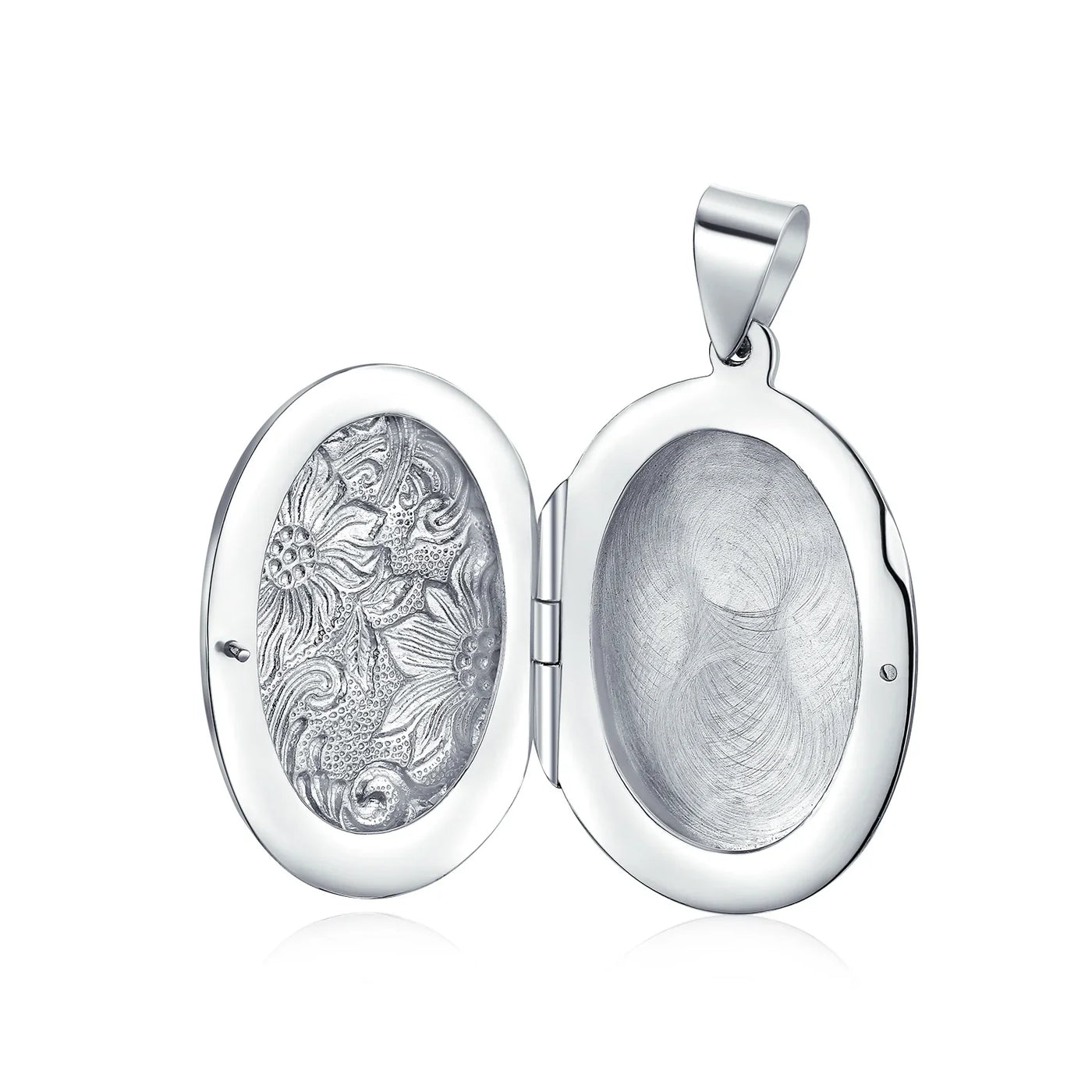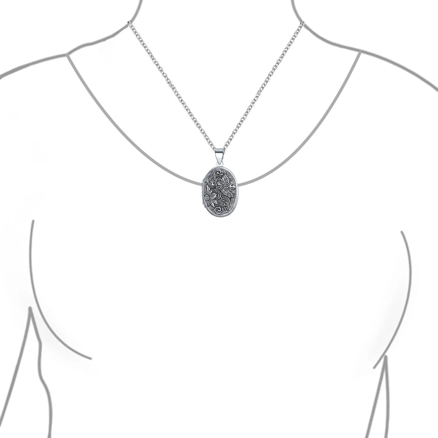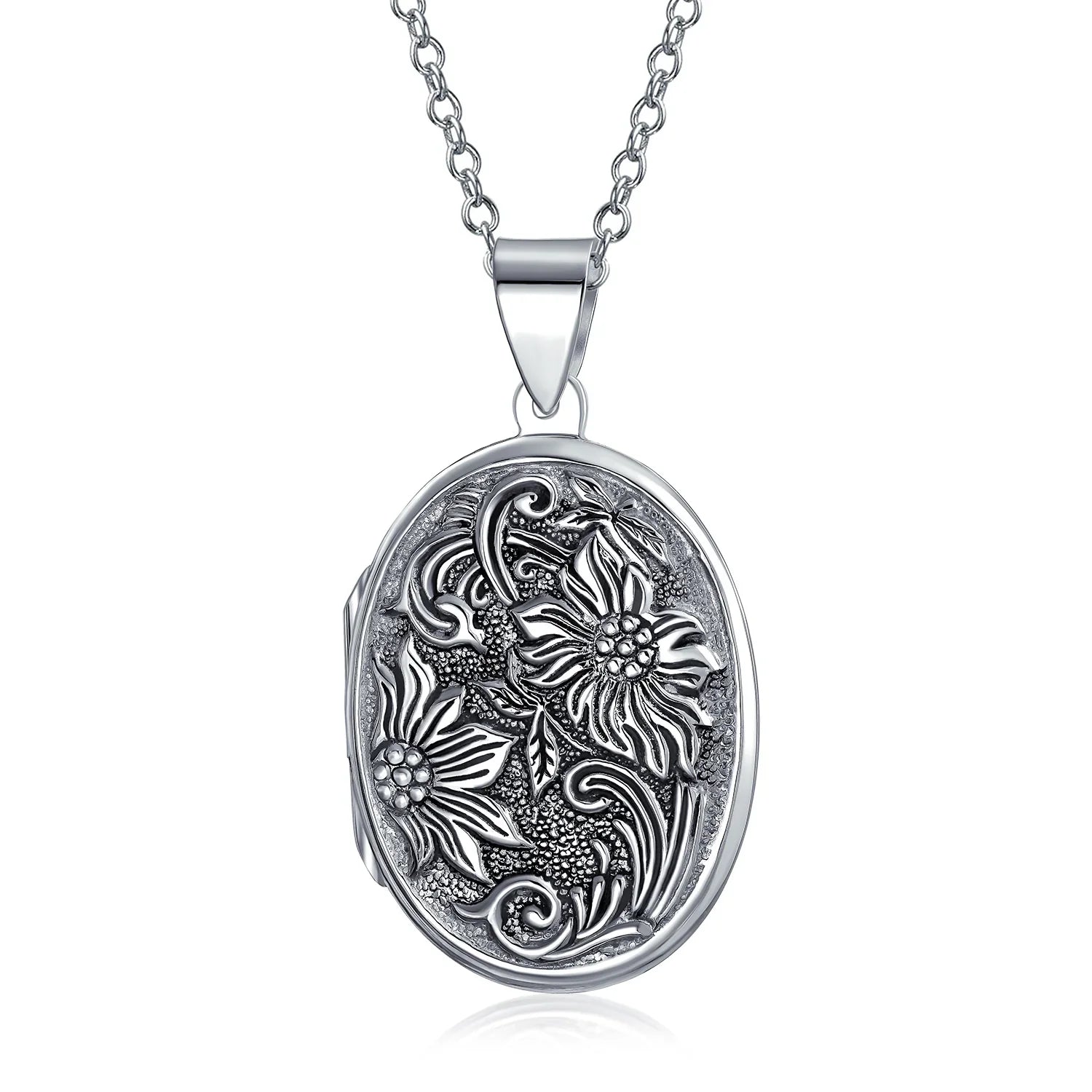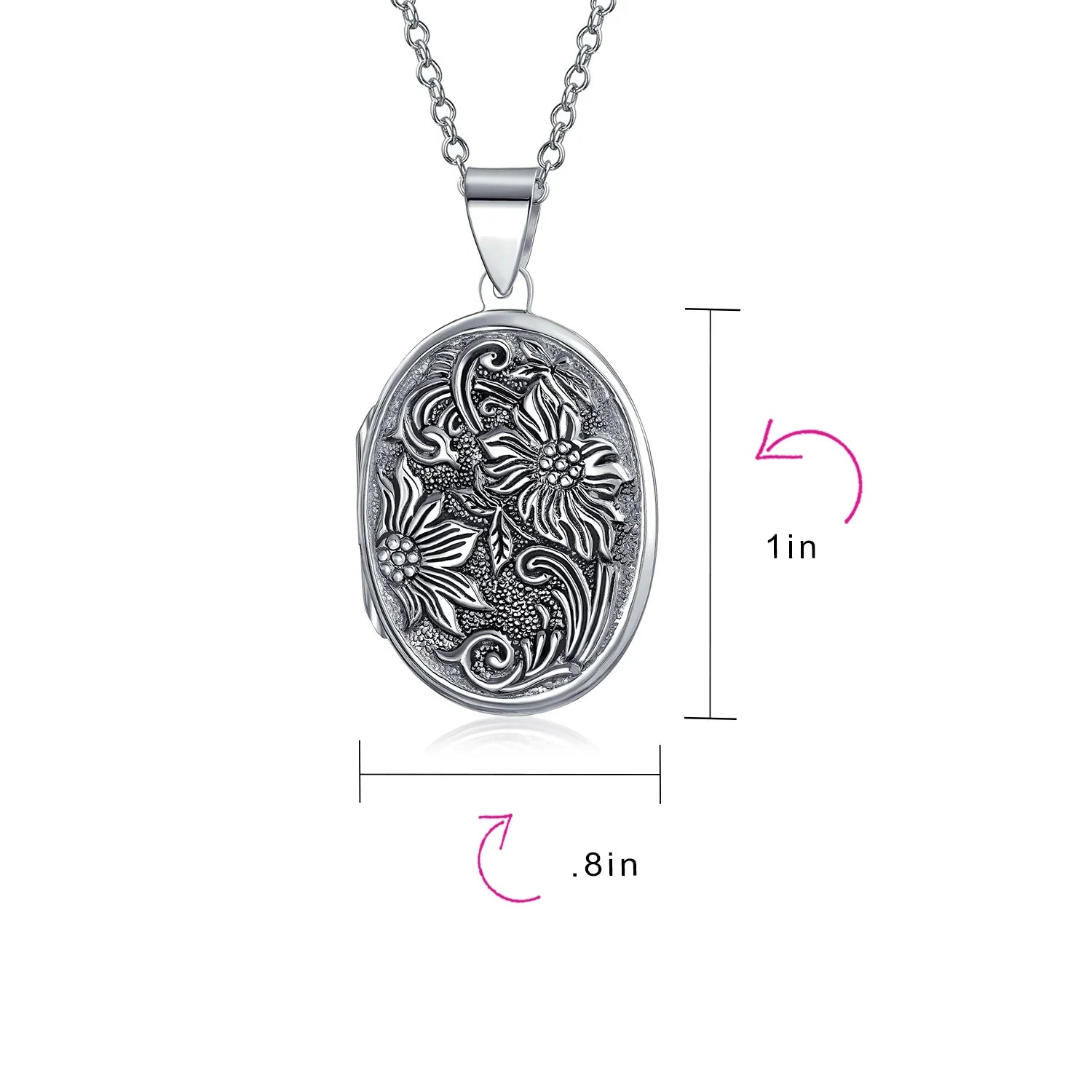 - This elegant locket necklace is a timeless jewelry gift, perfect for holding cherished photos of Best friend family members, or any special mementos close to the heart. Crafted from .925 sterling silver, this personalized locket features a delicate floral engraving on an oval-shaped pendant, making it a treasured keepsake for her favorite photo memories.