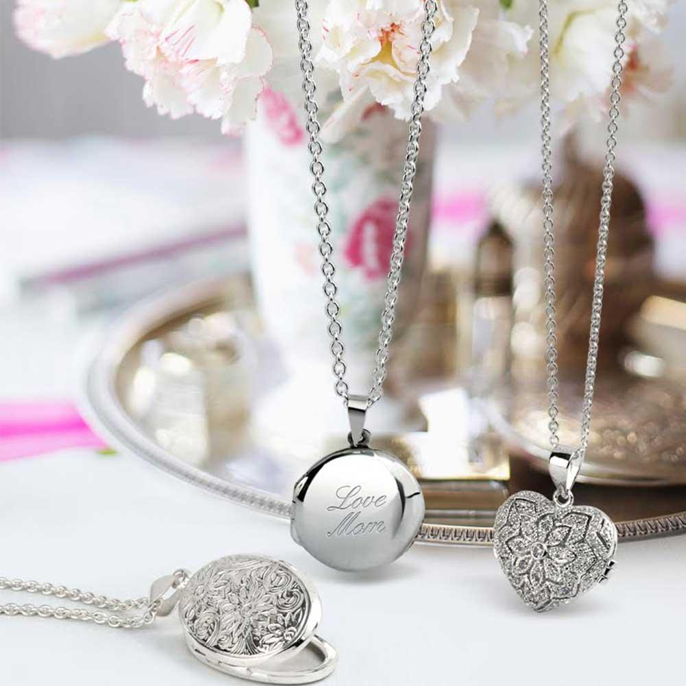 - For a simply beautiful look, our .925 Sterling Silver flower locket is classic and elegant. Picture lockets make perfect gifts for any special person. Personalize it with two photos she will love. The photo locket measures approximately an inch and a half, including the shiny bail. It is lightweight and perfect for keeping treasured keepsakes close to her heart. Order our engraved lockets today and surprise someone special on your gift list.