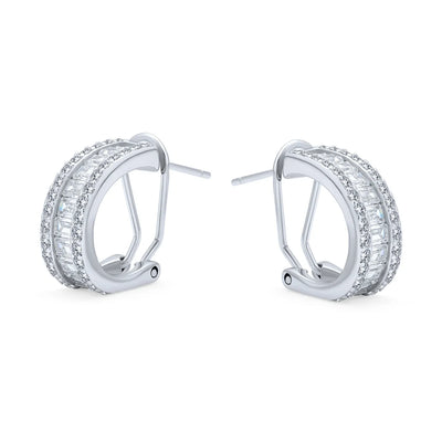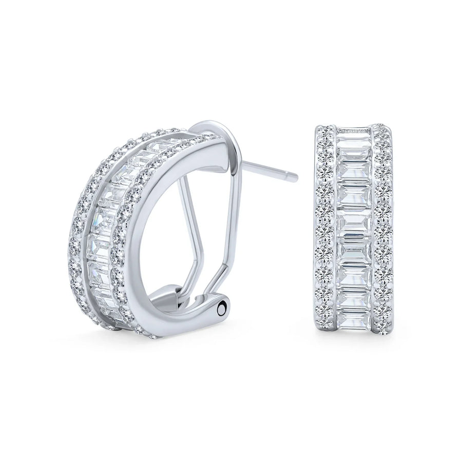- Elegance and grace define Art Deco Style jewelry, originating in 1920s France and flourishing globally in the 1930s and 1940s. Art Deco Style earrings remain stylish and chic today. Our stunning sterling silver omega back earrings embody the geometric look and shapes of the period. Luxurious and glamorous, they are perfect for your next event. Feminine baguette CZ half hoop earrings can instantly transform any outfit. Order a pair today and enjoy the epitome of style.