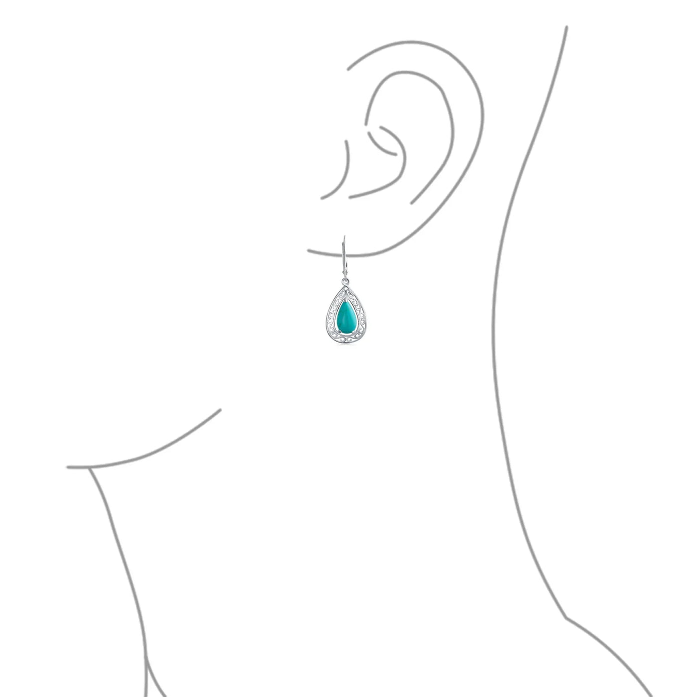 - Enhance your style with these turquoise teardrop drop earrings, showcasing sparkling sterling silver and an intricate filigree design. At 1.5 inches, they make a perfect gift for December.