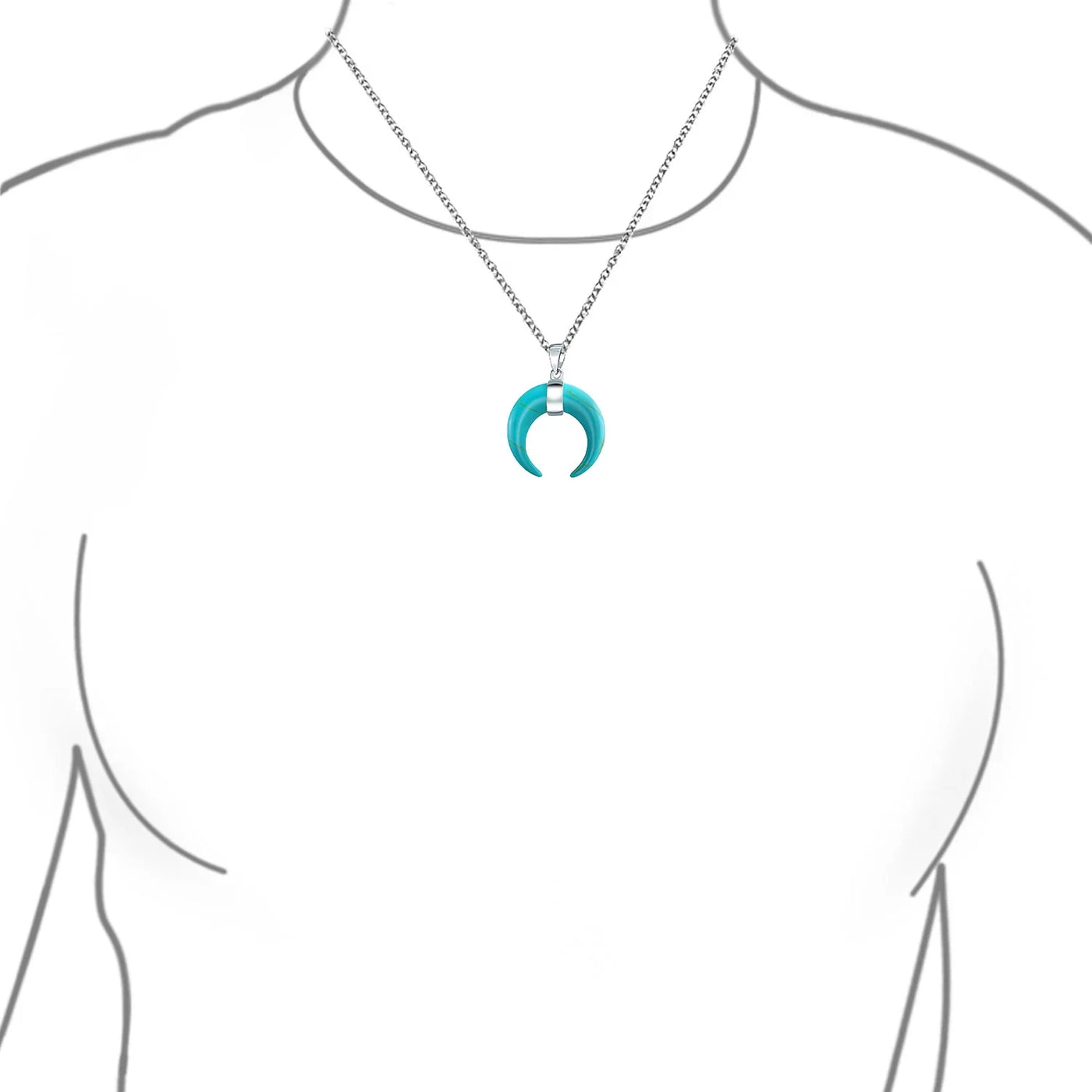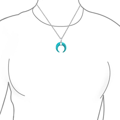 - Elevate your style with this vibrant tribal charm pendant necklace, featuring a captivating upside-down crescent moon and blue compressed turquoise. Crafted with precision, the .925 silver cable rolo chain adds a sleek, lustrous touch. Embrace the allure and make a bold fashion statement with this exquisite piece.
