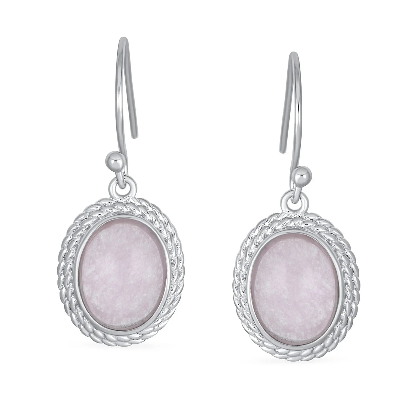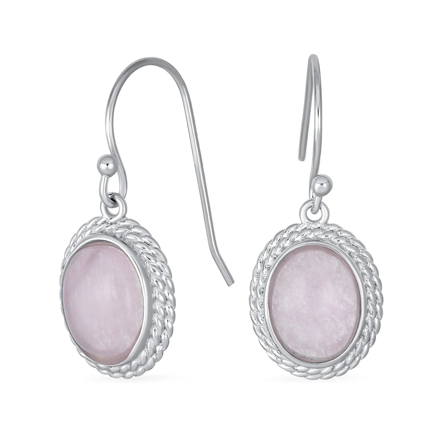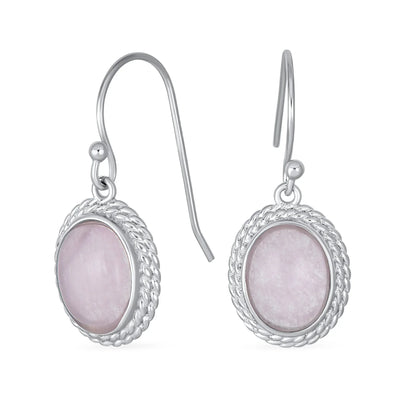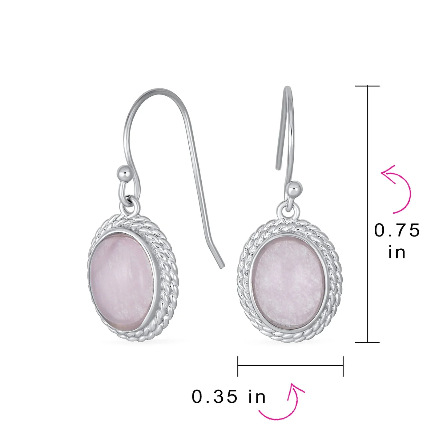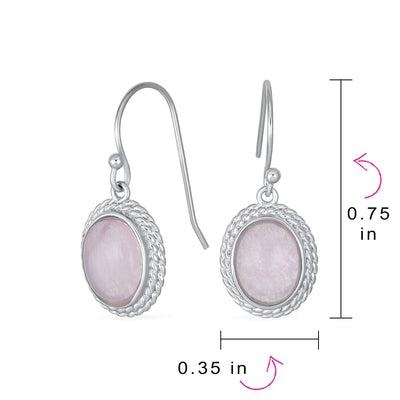 - For Pierced Ears, Stone: 6X8MM Pink Rose Quartz Material: .925 Sterling Silver, Rhodium Plating, Anti -Tarnish Measure: 0.75 Inch Length x 0.35" W Weight: 2 Gram