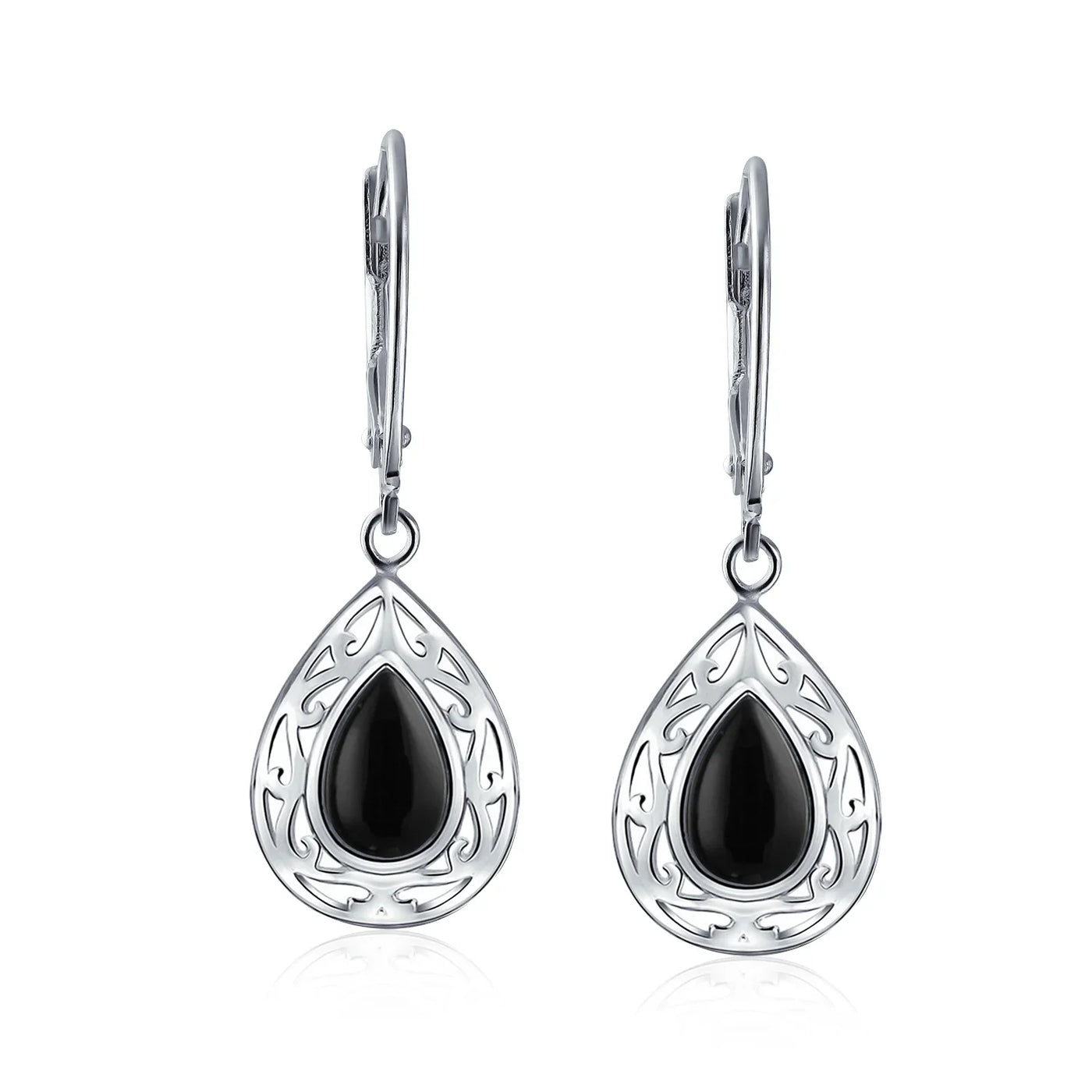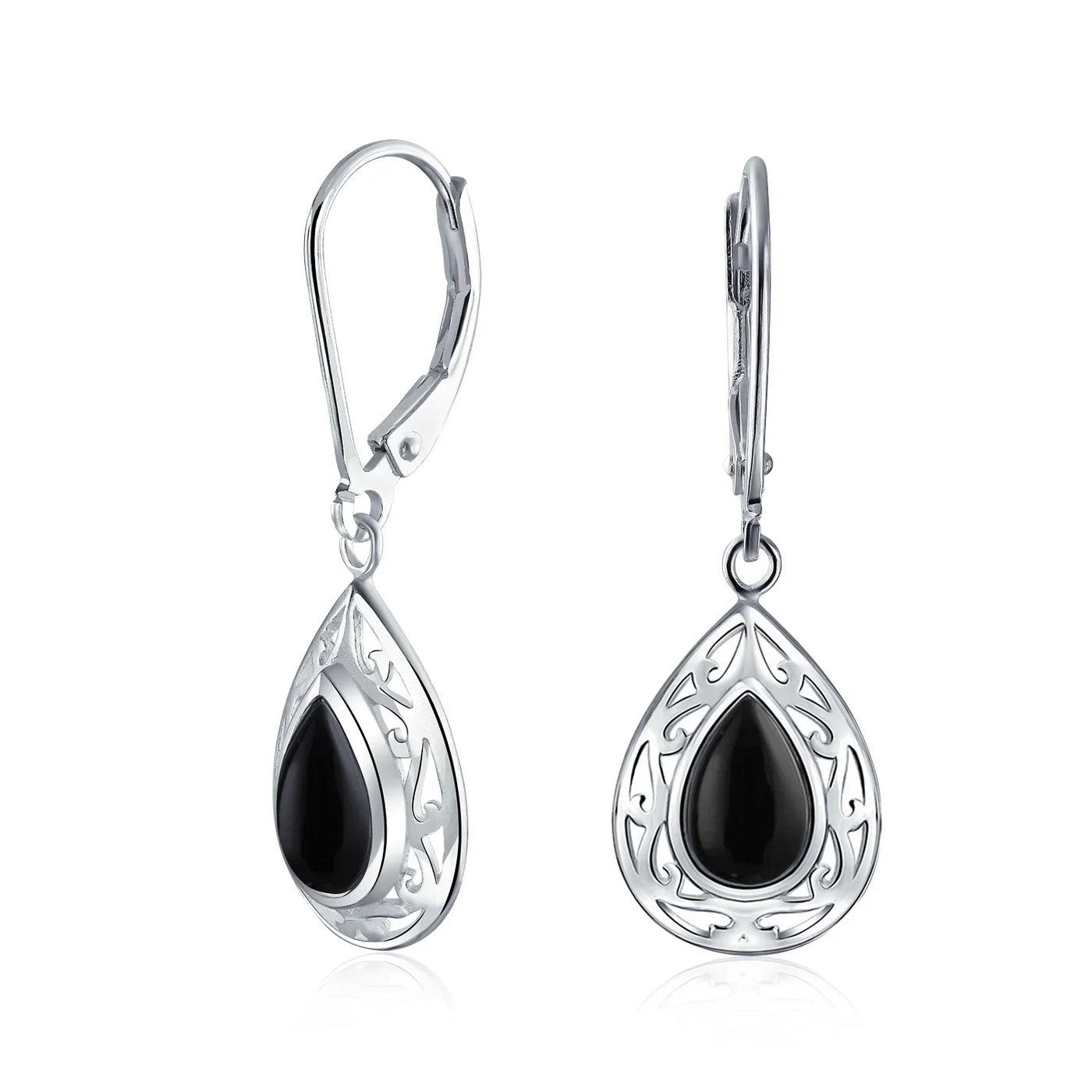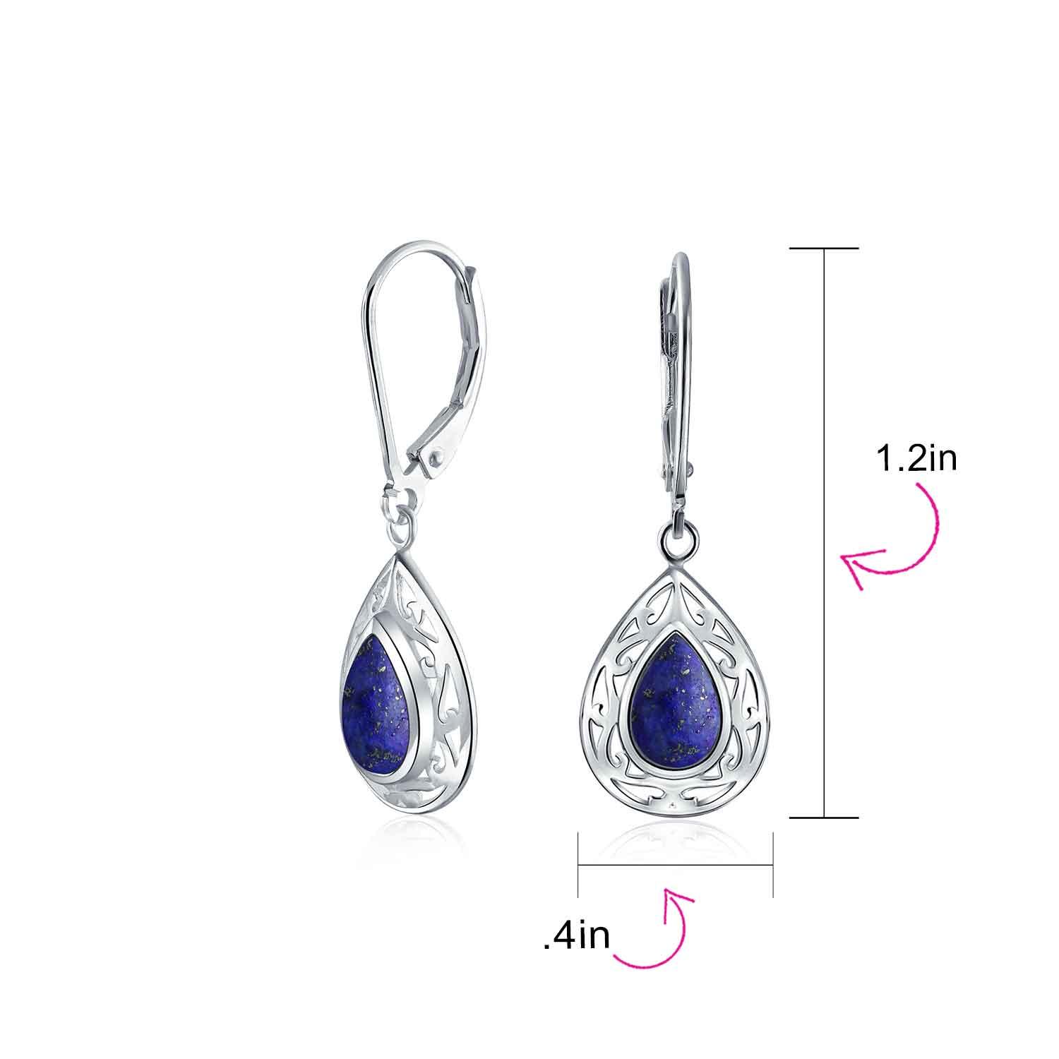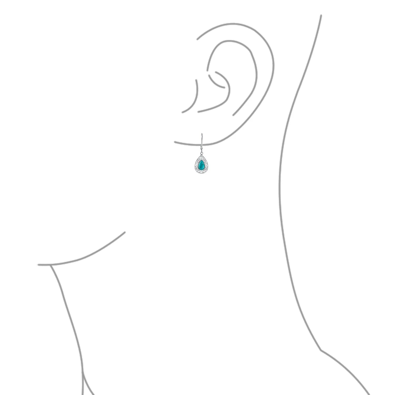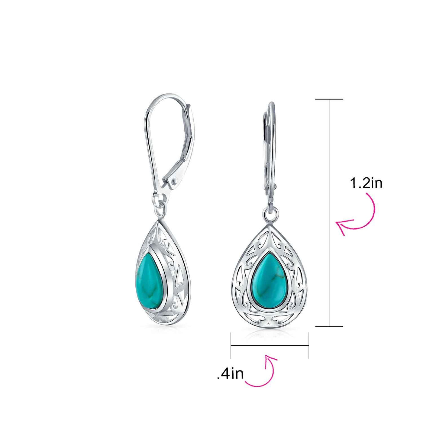- Add a vibrant pop of color with these elegant stabilized turquoise dangle earrings. Featuring .925 sterling silver filigree and vivid turquoise stones. Perfect for southwestern style lovers. Surprise someone special with these stunning lever back turquoise teardrop earrings.
