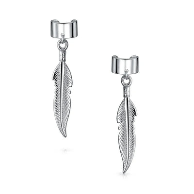 - BEAUTIFUL STYLE - Exuding boho chic flair, these .925 silver ear cuff earrings for non pierced ears will be your new favorites. Highlighted by a delicate, dangling feather motif, they radiate charm with a free-spirited, natural feel.