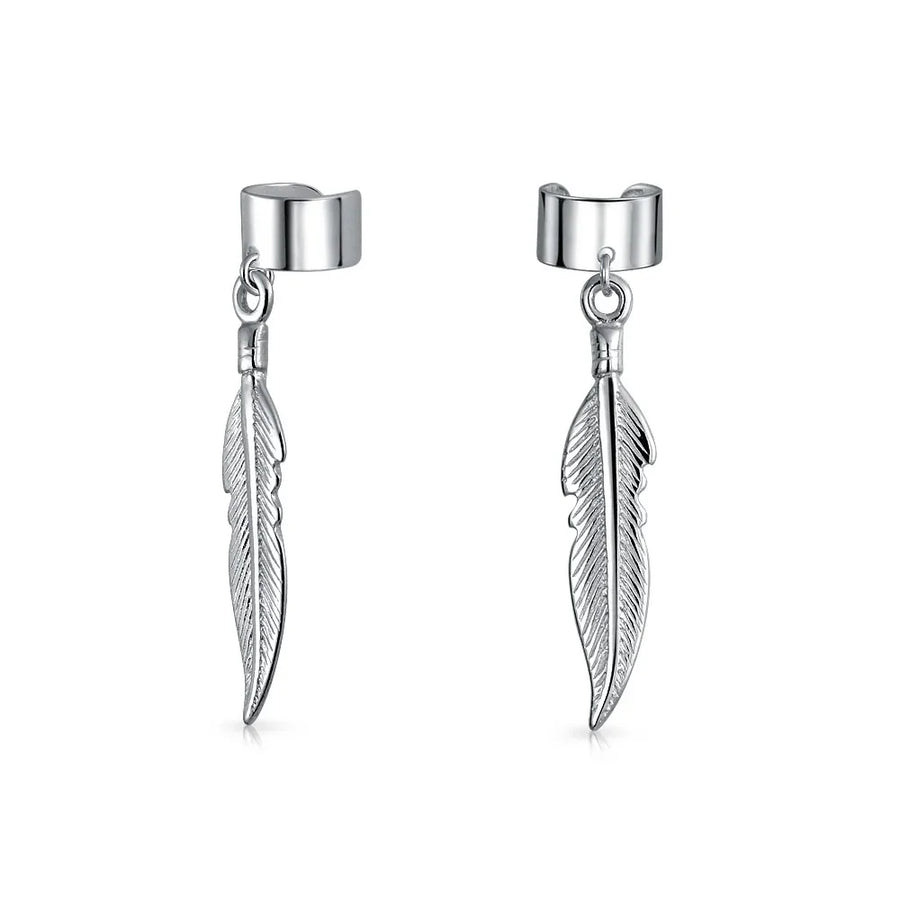 - Our latest sterling silver ear cuff jewelry is nature-inspired. These dangling leaf feather earrings are irresistibly cute. Feel nature's embrace and flaunt this shiny cuff. Refresh your style with these fun, fresh cuff earrings.