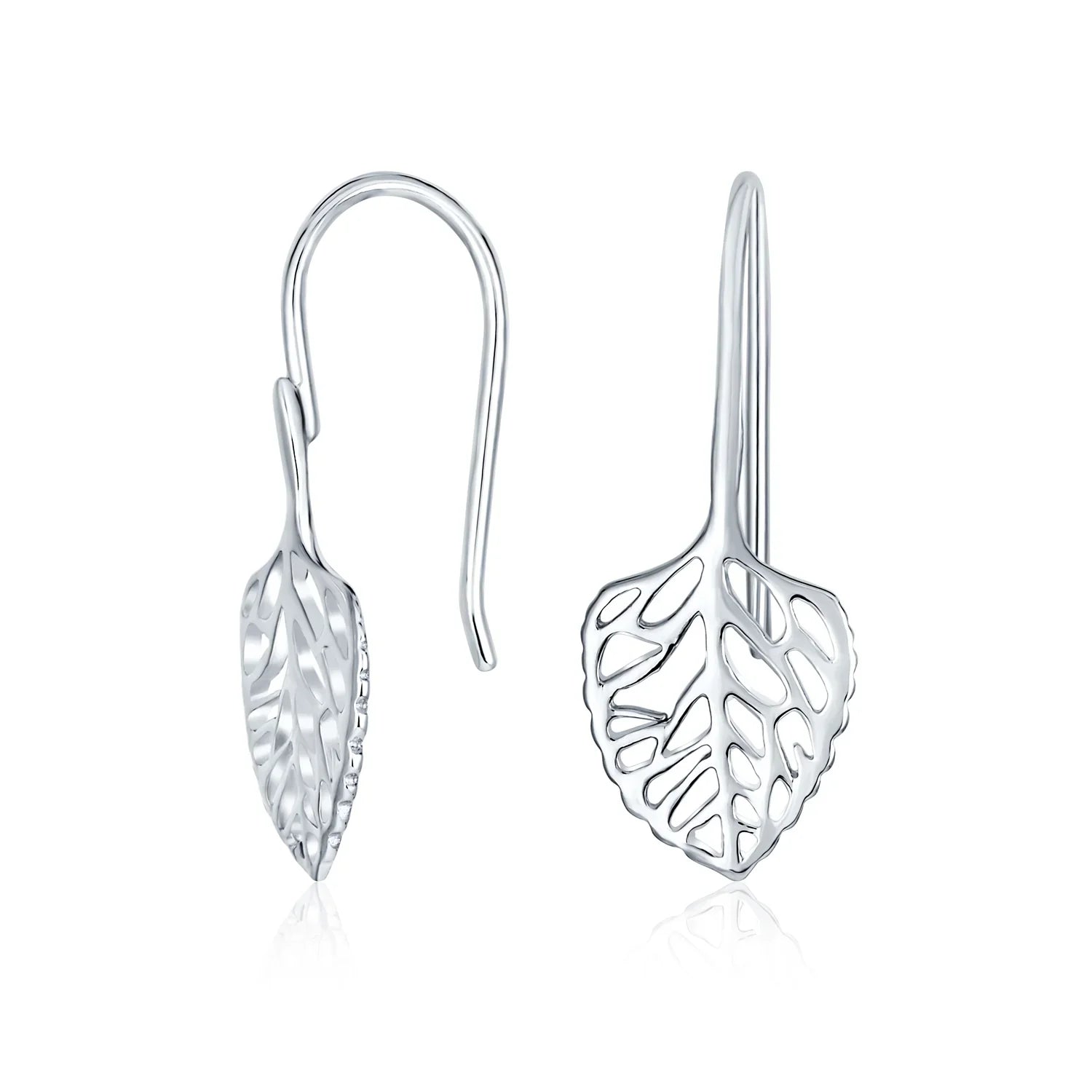 - Elevate your style with these stunning sterling silver dangle lever back earrings featuring a delicate cut-out filigree leaves design. Crafted in glowing sterling silver, these earrings will breathe new life into your look.