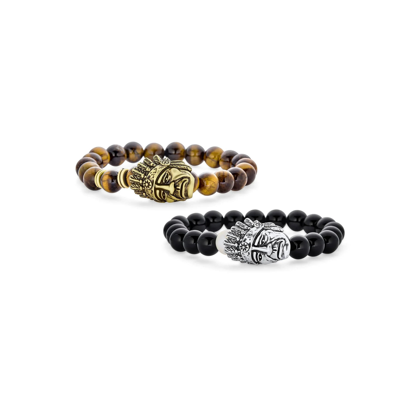 - Elevate your style with this prayer bracelet, showcasing a striking masculine Indian charm. Its distinctive design enhances any outfit's visual appeal. For a trendy, bold statement, layer it with our stretch bracelet collection.
