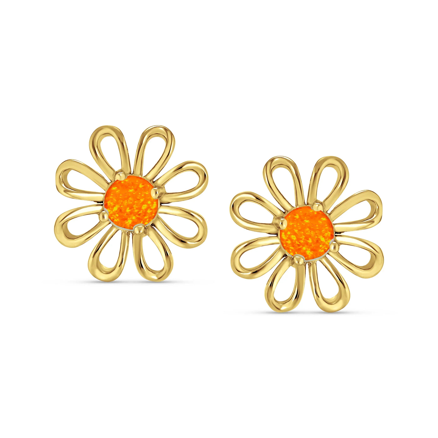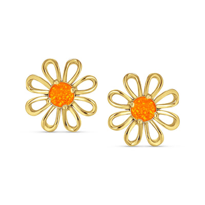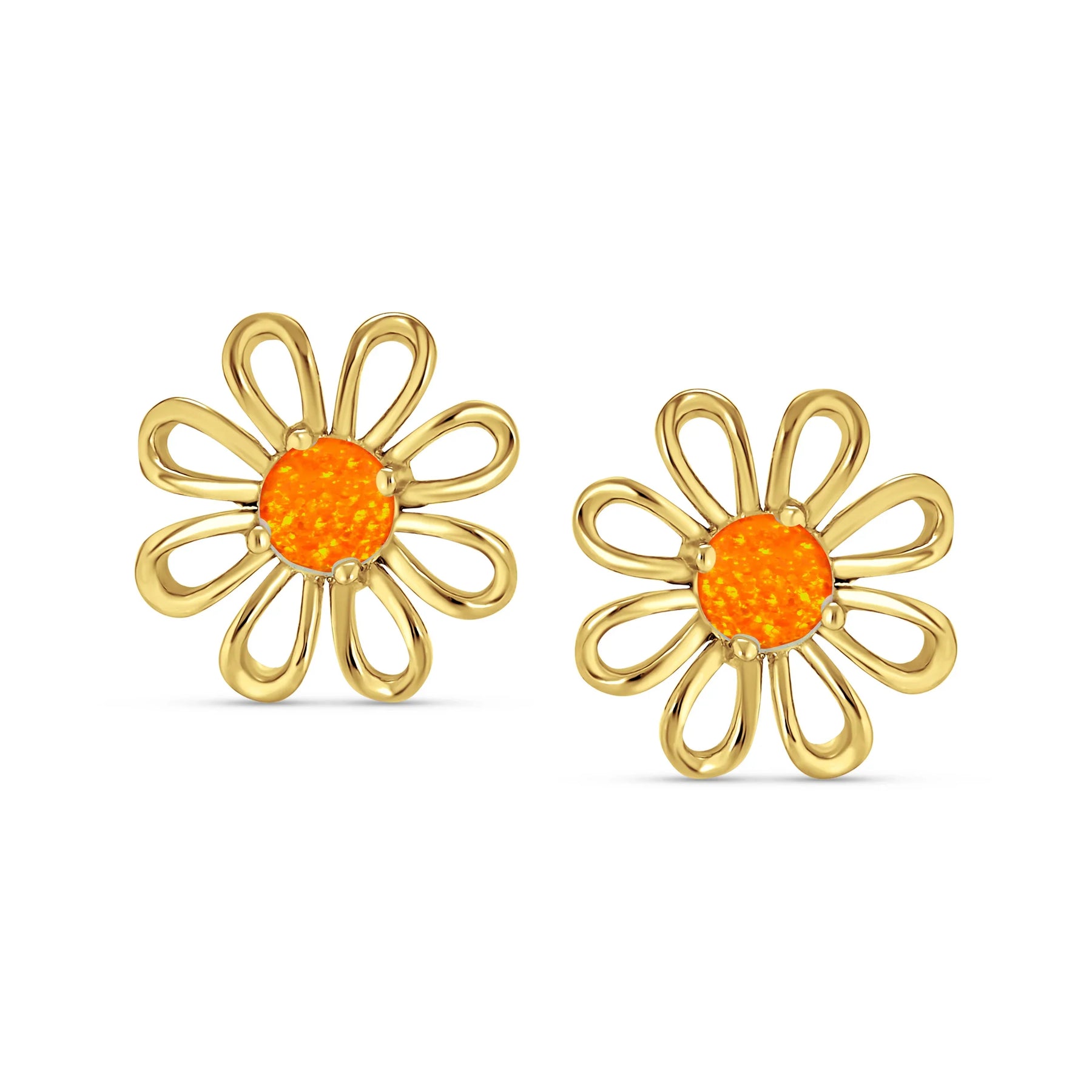 - Embrace spring with these charming daisy stud earrings. Crafted from 925 Sterling, they feature cutout petals and a captivating created opal center. Known for its beauty and mystical healing properties, created opal jewelry has been cherished for ages. These stunning studs add brilliant, multifaceted color and feminine flair to any outfit.