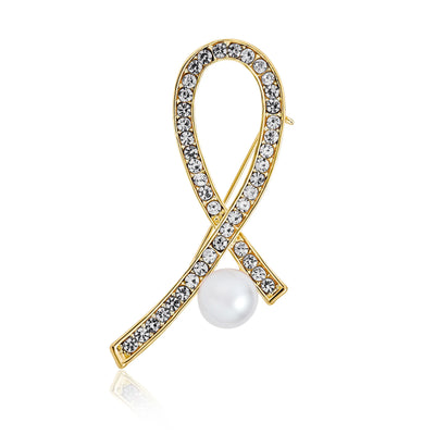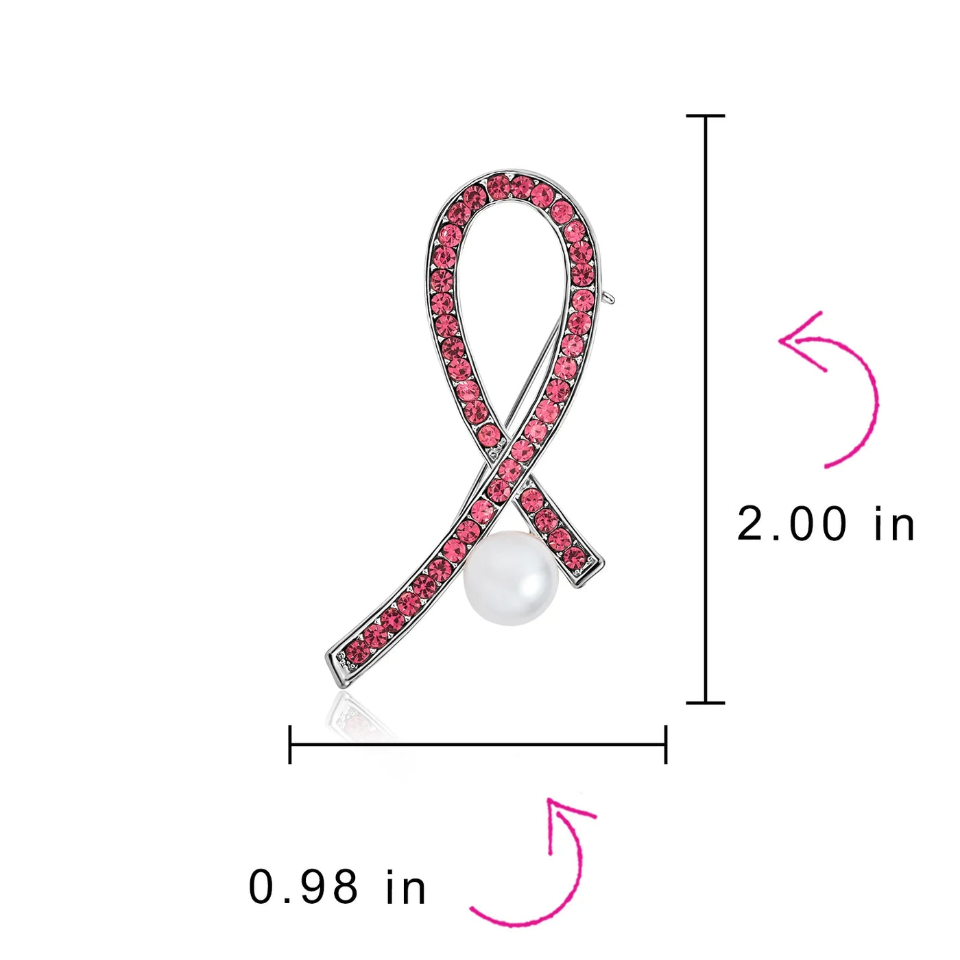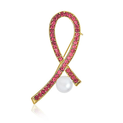 • Brilliantly express your support for Breast Cancer awareness with this dazzling, pink glass crystal and simulated pearl ribbon pin brooch, crafted with gold plated brass. The 10mm, simulated pearl is a lovely accent to the shimmering ribbon motif. This pink ribbon is a widely known symbol for breast cancer awareness. Perfect for a rally. Share it with a friend, spread the word and represent this important cause with stunning style.