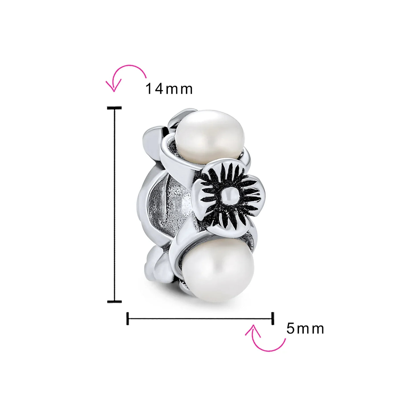 - Our flower simulated pearl charm is a stunning piece of modern classic jewelry. Perfect addition to your bracelet collection. Crafted in Sterling Silver, this pearl flower charm makes a terrific gift for Mother's Day or any special occasion.