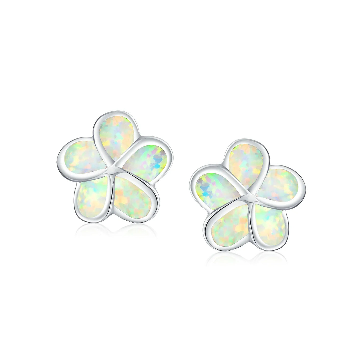 - Elegant and timeless, our Created Opal flower stud earrings are perfect. Pair with our Claddagh sterling silver Created Opal pendant for a stunning set. Created Opal jewelry is linked to mystical powers, creating a unique aura. Ideal gift for October birthdays, friends, and family. Light, bright, and easy to wear, these silver Created Opal earrings delight young ladies on your gift list.