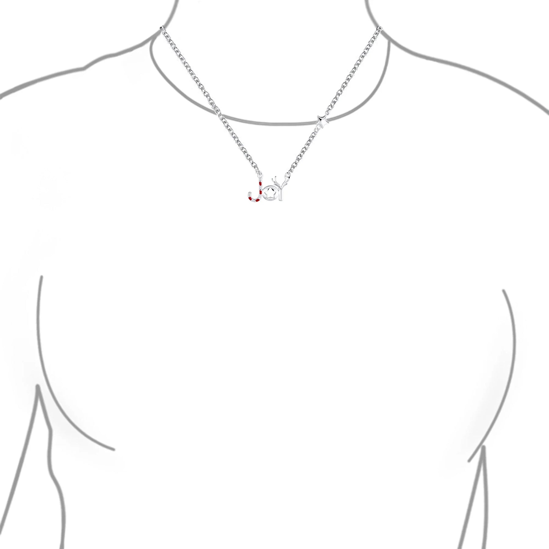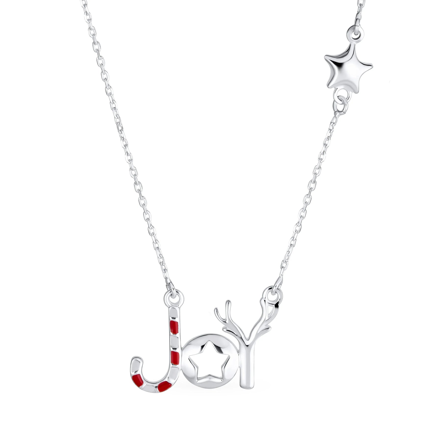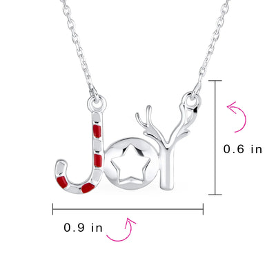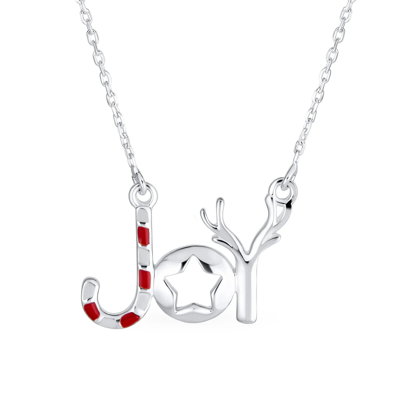 - Holiday JOY Necklace - Featuring a festive red enamel stripe candy pendant with a J for JOY, a star for O, and reindeer antlers for a whimsical touch.