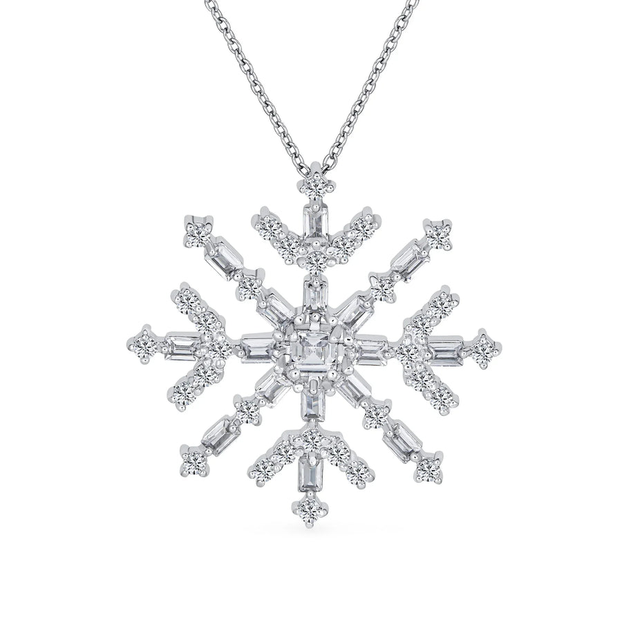 - Stay stylish and sparkling even in the coldest of winters with this delightful necklace. Crafted with CZ bling, this festive snowflake pendant is sure to catch everyones attention. Whether youre attending a family gathering, special occasion, or formal evening holiday party. Give it to your loved ones and let them embrace the holiday spirit perfect gift for anyone looking to add a touch of winter magic to their wardrobe.
