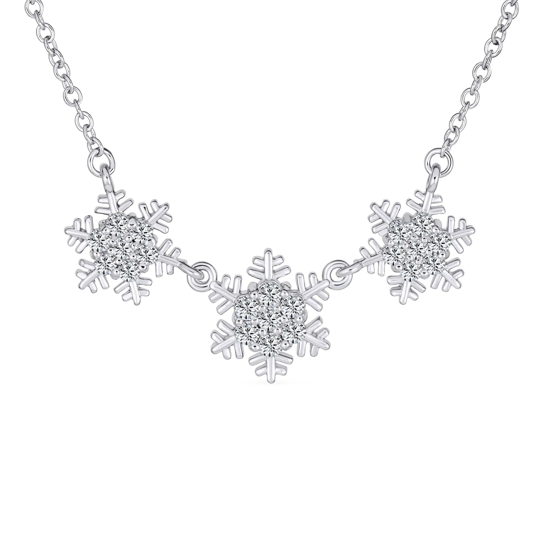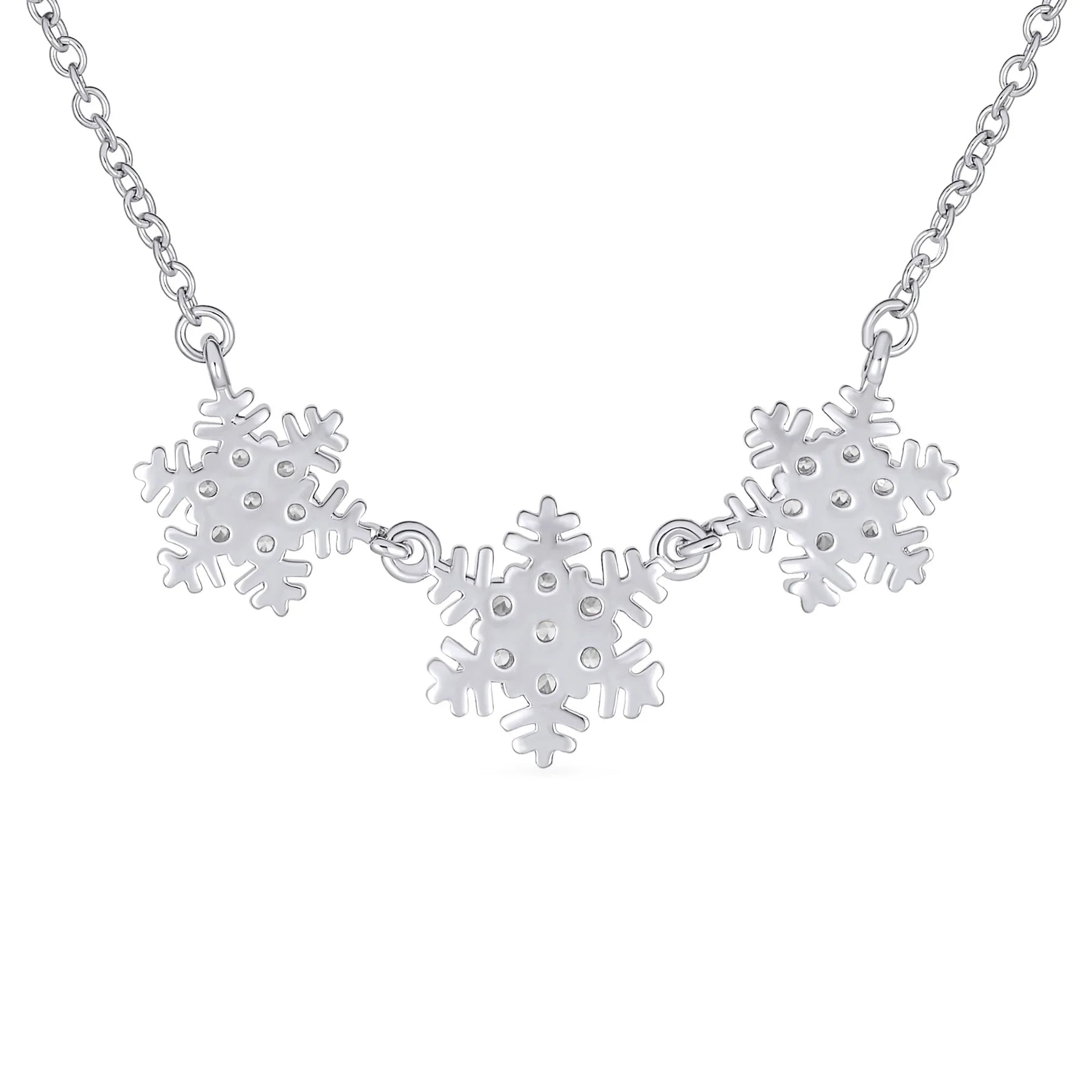 • Add a touch of winter magic to your jewelry collection with our delicate snowflakes choker necklace. This necklace features a festive five-point glittering CZ snowflake pendant. Whether youre looking to upgrade your winter wardrobe or add a touch of elegance to your family gatherings, special occasions, or formal evening holiday parties, this necklace is the perfect choice.