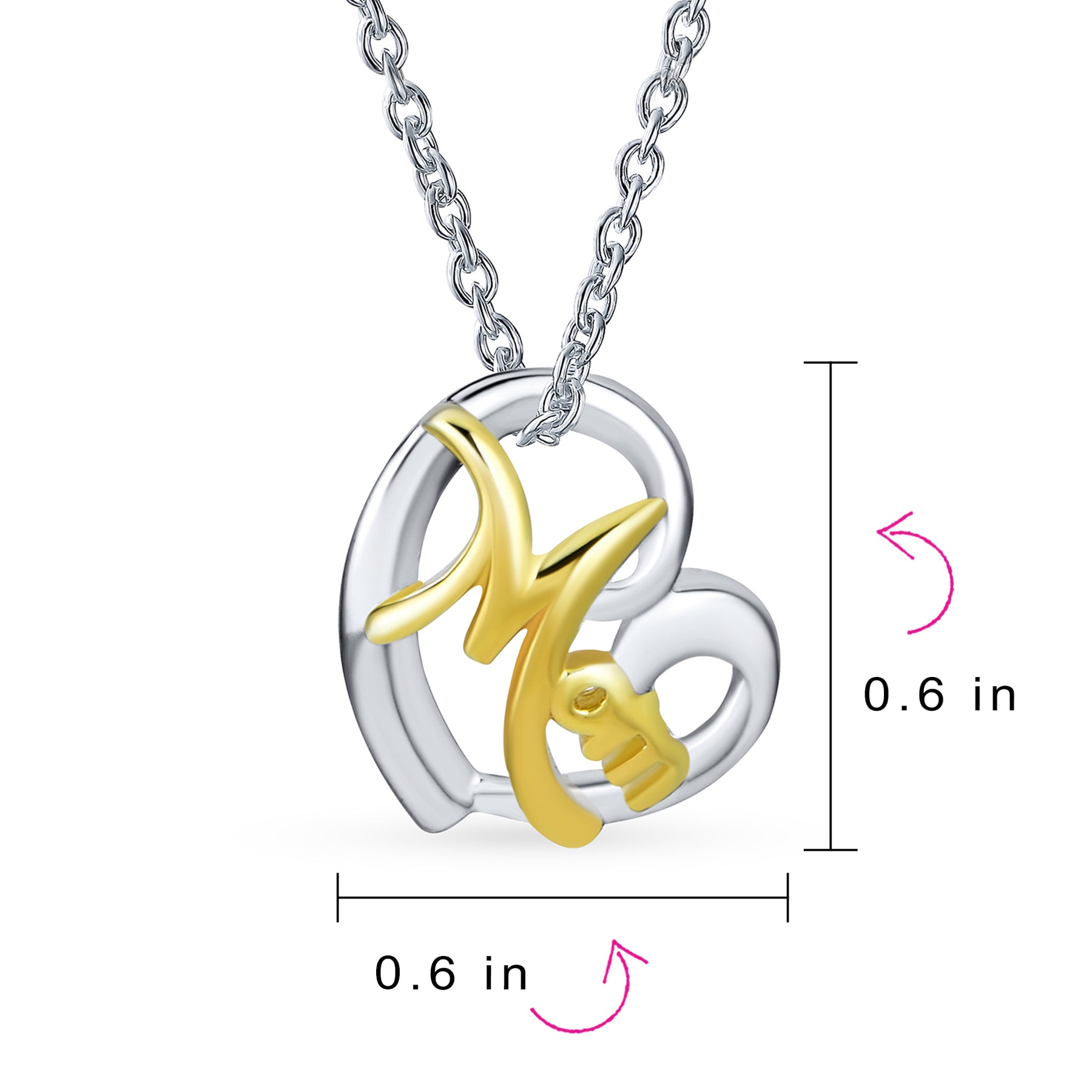Words MOM Heart Pendant Necklace Mother Two Tone Rose Gold Plated Sterling Silver